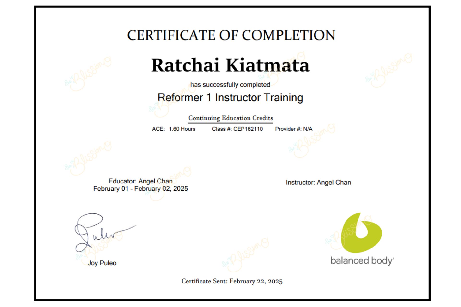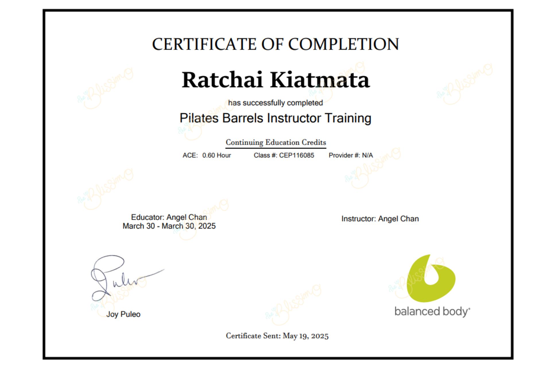 โค้ชชัย โค้ชมืออาชีพที่ได้รับการรับรอง ผ่านหลักสูตรจาก balanced body